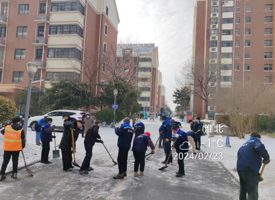 近日,淮北市迎來大范圍降雪。為保障小區(qū)業(yè)主的安全出行,防止路面結(jié)冰,龍溪水岸物業(yè)組織現(xiàn)場人員迅速投入到清雪工作一線,對小區(qū)內(nèi)的積雪進行大面積清掃。