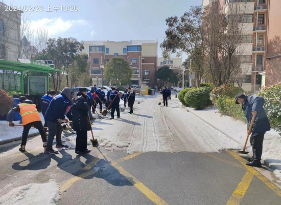 由于氣溫較低,路面的雪被壓得很結(jié)實,清掃工作十分困難,但大家都爭先恐后,干勁十足,一心想著將路面的積雪冰塊盡快清除,保證居民的正常安全出行。經(jīng)過大家的共同努力,積雪很快被清理干凈,極大地方便了居民的安全出行。掃雪除冰工作不僅為業(yè)主營造出了干凈整潔的出行環(huán)境,消除了安全隱患,提高了居民的獲得感和幸福感,也進一步拉近了與業(yè)主之間的距離。