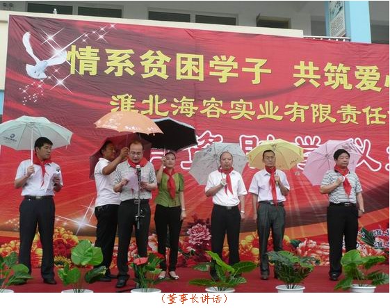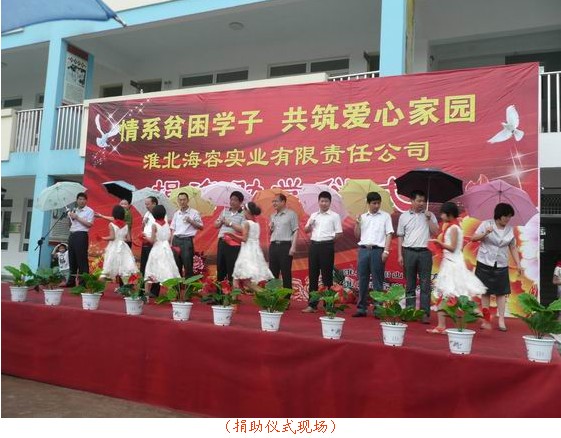 愛化春雨潤校園,企業(yè)點(diǎn)滴獻(xiàn)愛心, 6月30日上午,海容實(shí)業(yè)公司董事長徐毅及總經(jīng)理石啟遠(yuǎn)出席了為渠溝鎮(zhèn)合眾小學(xué)捐資助學(xué)儀式,本次捐資助學(xué)儀式由淮北相山區(qū)政府教育局主辦、海容實(shí)業(yè)有限責(zé)任公司承辦,海容公司董事長及總經(jīng)理在助學(xué)儀式上作了精彩的講話,對(duì)學(xué)校師生們表示了深切關(guān)懷,并希望能夠盡企業(yè)的綿薄之力為學(xué)校的孩子們獻(xiàn)一份愛心,讓企業(yè)的關(guān)愛溫暖整個(gè)校園,合眾小學(xué)的代表向海容實(shí)業(yè)這一善舉表達(dá)了的感激之情,并表示會(huì)利用好這筆助學(xué)金,操場上孩子們臉上洋溢著喜悅的笑容,并上臺(tái)為企業(yè)代表及相山區(qū)教育局的工作人員佩戴了鮮艷的紅領(lǐng)巾,儀式結(jié)束后企業(yè)代表、教育局工作人員與合眾小學(xué)的學(xué)生們合影留念。